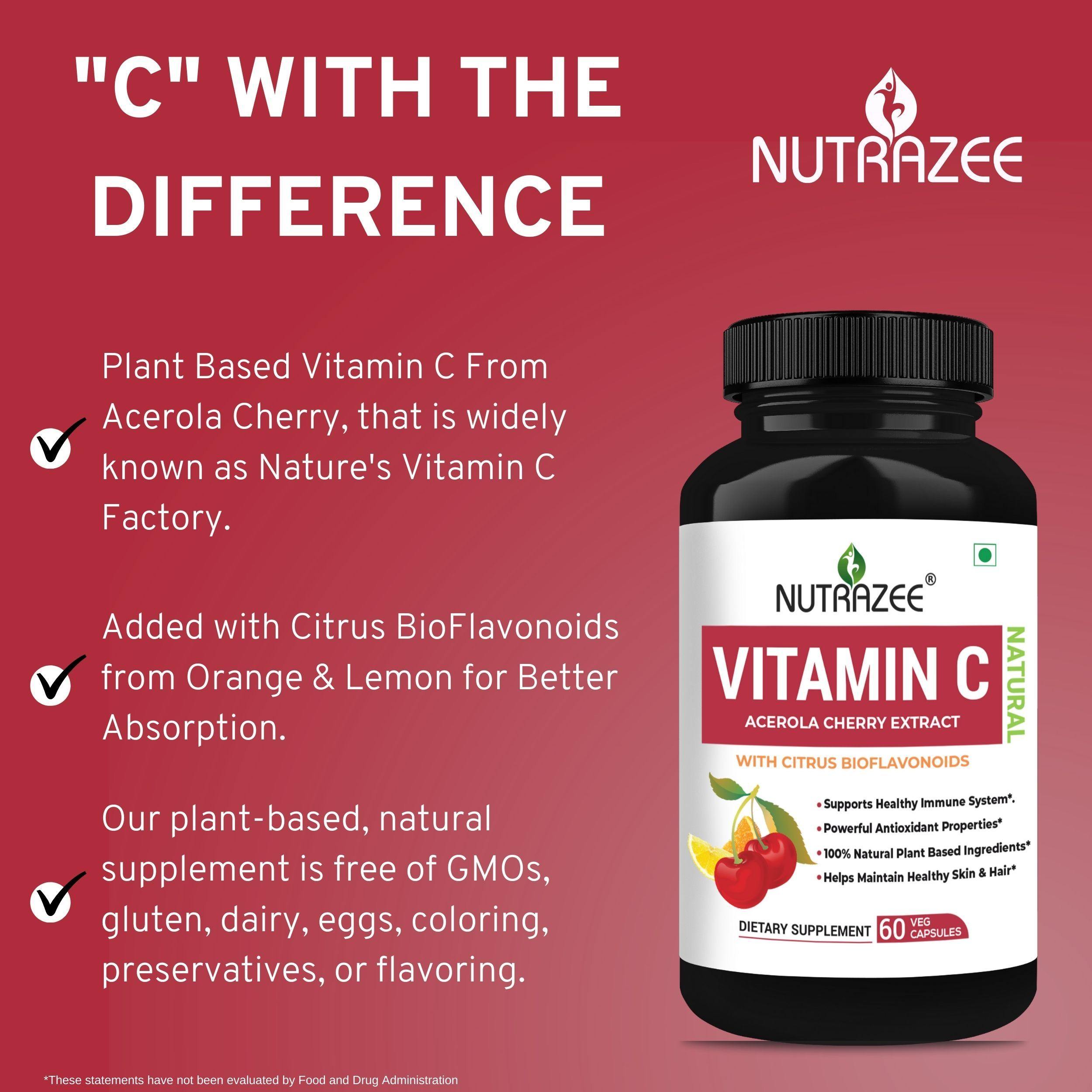 Nutrazee Plant Based Vitamin C Acerola Cherry 60 Vegan Capsules